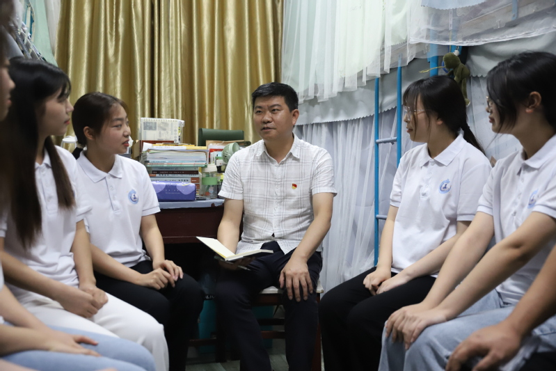 为贯彻落实《中共中央办公厅印发〈关于推动党史学习教育常态化长效化的意见〉的通知》精神和《中共湖北省委304am永利集团开展党员干部下基层察民情解民忧暖民心实践活动的通知》要求,走好新时代党的群众路线,结合文学院“九个一”工作安排,2022年6月9日晚,由校党委副书记马列军带队,教务处处长胡艳军,教育质量监测与评估中心主任、教务处副处长秦海涛,教务处副处长黄海军、刘文华、周艳华,文学院党委书记严志谷、院长李治平、院党委副书记陈敬道、副院长彭江浩和王成以及班主任、辅导员一同深入走访文学院学生宿舍,调研基层困难、倾听师生声音、现场协调推动解决“急难愁盼”问题。
