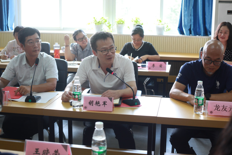 教务处处长胡艳军、外国语学院党委书记龙友元、外国语学院副院长龚波、教师教育学院副院长姚菁、英语系系主任朱勇进、刘敏名师工作室、胡智全名师工作室、宋溢青名师工作室、王晓莹名师工作室等参加本次交流研讨,会议由副院长龚波主持。