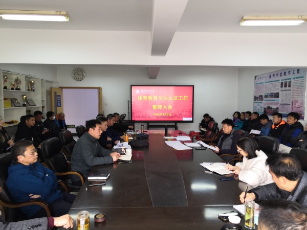 本网讯(唐秀庚 摄影/报道)3月2日下午,体育学院在体育馆2楼会议室召开体育教育专业认证工作誓师大会。体育学院全体教职工参加会议。