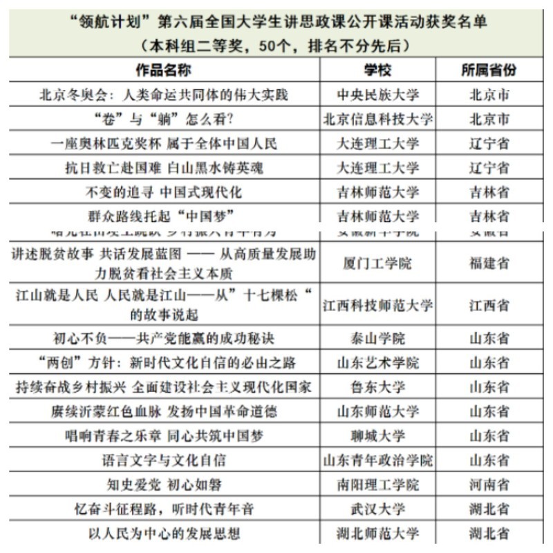 习近平总书记在党的二十大报告中指出“青年强,则国家强。”为引导青年学生厚植爱国情怀、坚定报国之志,马克思主义学院组织学生参加了以“青春献礼二十大强国有我新征程”为主题的第六届全国高校大学生讲思政课公开课展示活动并获得二等奖。