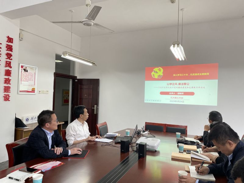 5月24日下午,机关第五党支部在教育大楼1131会议室开展以“深入学习二十大 扎实推进主题教育”为主题的党日活动。支部全体党员参与,活动由支部副书记石玮同志主持。