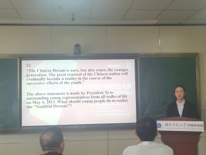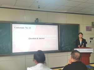 此次校园决赛共分为两个环节:即兴演讲和问答。从初赛中脱颖而出的14名选手共同为现场的观众带来了一场高水平的英文视听盛宴。即兴演讲内容涵盖习近平新时代中国特色社会主义思想的核心内容,涉及政治建设、经济建设、文化建设、社会建设和生态文明建设等领域的重要话题。台下的观众专心聆听,积极互动,现场不时爆发出阵阵热烈的掌声。在问答环节,评委针对选手们的演讲内容进行了提问。选手们有针对性地一一做出解释或回答,他们的话语铿锵有力;作为年轻一代大学生,他们对当代中国的理解鼓舞人心。