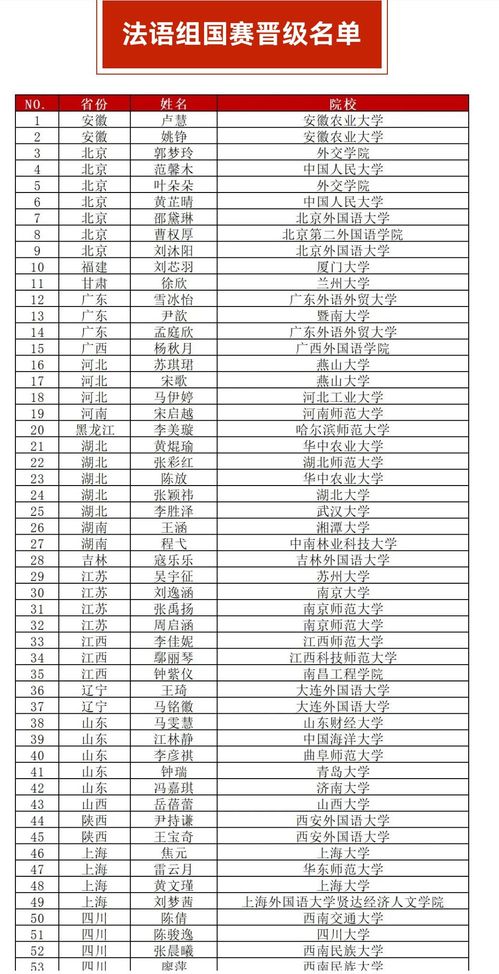 附:法语组国赛晋级名单