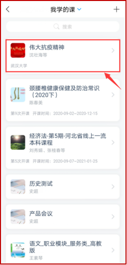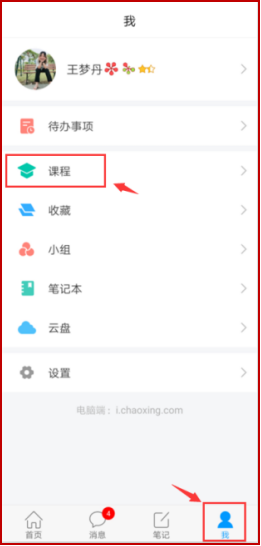 第三步:点击我,进入“课程”应用,单击课程后进入章节学习界面。