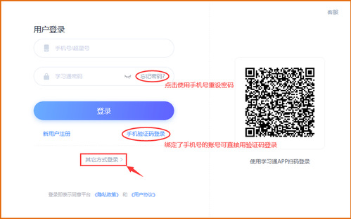注意:1、如果忘记密码,可在登录页面下方点击忘记密码,通过输入绑定的手机号,接收验证码设置新的密码。2、如果更换手机号,请用已绑定的手机号+密码登录后,点击右下角【我的】,再点左上角头像进行信息修改。3、问题咨询方式:线上客服(速度比较快)在学习过程中遇到任何问题,学生可咨询在线人工客服,APP端右上角语音标志就是,进入输入“转人工”三字就可以转接人工客服。(注:解决问题找人工在线客服,不要一直跟机器人聊天)手机APP 请扫描二维码或前往应用市场进行下载