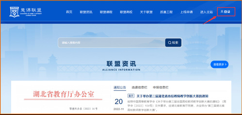 第一步:访问楚课联盟网址(http://www.chucoonline.com)或者各高校超星网络教学平台网址。