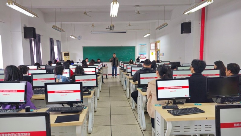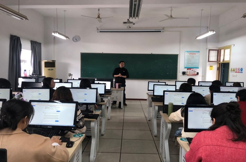 为迎接教育部本科教育教学审核评估,提升我院教师数字素养,强化技术赋能,引领教育教学改革,3月21日下午,外国语学院联合超星集团武汉分公司在教育大楼1909教室开展线上授课及考试系统培训。外院全体教师参加培训,本次培训活动由副院长项军平主持。