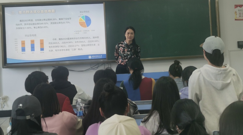 王赛玉指出,“就业”成为“两会”政府报告中的高频词,体现了以习近平同志为核心的党中央对当前就业工作的高度重视,各地政府和高校已把做好就业工作摆到突出位置。她对当前的就业形势进行了全面的分析,并鼓励同学们要积极适应市场需求,坚持不懈地提升自己的综合素质,极力增强就业竞争力,运用多渠道积极地获取就业机会,以便在竞争激烈的就业市场中脱颖而出。