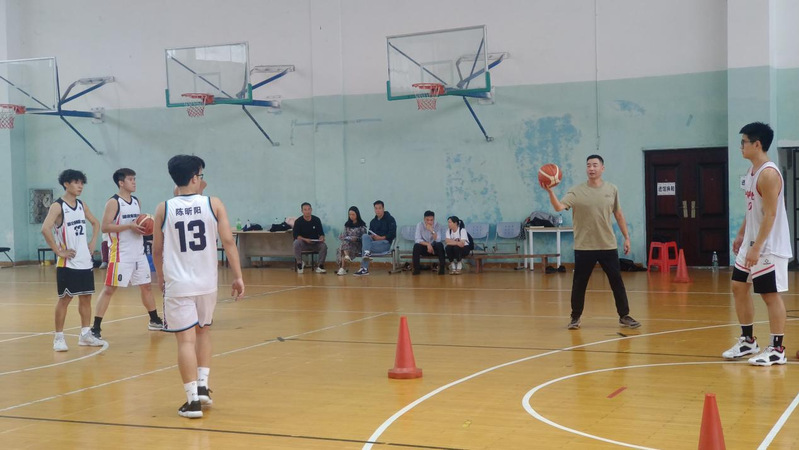 王赛玉来到体育馆四楼,认真听取了体育学院沈威老师讲授的《主修项目理论与实践(篮球专项)》课程。本节课主要讲授内容是防守脚步移动和综合运球,沈威老师课前准备充分,教学内容娴熟,教案完备,动作要领讲解详细,动作示范规范,针对学生练习中存在的问题及时进行指导,师生精神饱满,课堂秩序良好。