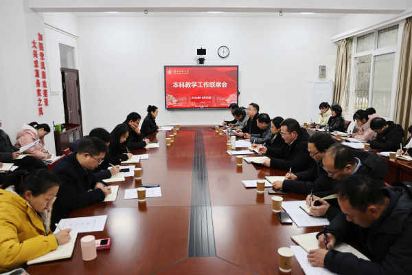 12月25日下午,学校在教育大楼1131会议室召开本科教学工作联席会。校党委常委、副校长王赛玉,教务处班子成员,学工部负责人,各教学院分管教学工作负责人和教学办主任等参加会议。会议由教务处处长胡艳军主持。