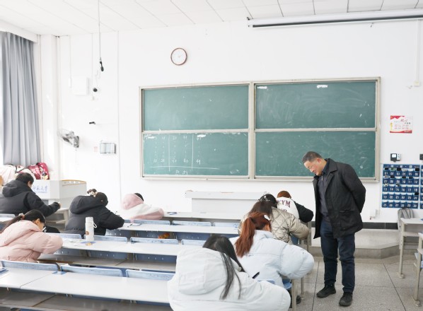 巡视过程中,校领导深入考场一线,仔细查看了考场的布局、监考人员履职情况以及考生的考试状态,详细了解监考人员的配置与分工,重点检查考场纪律的执行情况,对考试全过程进行严格的监督。