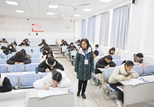 据悉,本次期末考试共安排了1479场考试,分布在教育、科技、人文等大楼进行。监考人员2982人次,考生74590人次。(摄影 汪叶)
