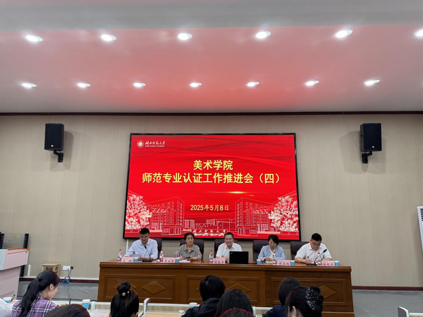 胡艳军对美术学院前期认证筹备工作给予充分肯定。他结合自身的师范专业认证组织及评审经验,围绕师范类专业认证的培养目标、毕业要求、课程与教学、合作与实践、师资队伍、支持条件、质量保障和学生发展八大核心指标体系,进行了系统性解读,结合专家评审关注点进行了指导,为学院更细、更实做好认证工作厘清了思路。他强调,要精准把握认证指标内涵,切实将认证要求转化为专业建设实效。他指出,师范专业认证是推动专业高质量发展的重要抓手,学院上下要凝聚共识、协同发力,高质量完成认证各项准备工作。