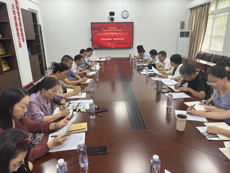 为深入学习贯彻习近平新时代中国特色社会主义思想,弘扬伟大抗战精神,9月12日下午,机关第五党支部在教育大楼1131会议室组织开展以“弘扬抗战精神 担当时代使命”为主题的党日活动。党委常委、副校长胡艳军参加活动并讲话,支部全体党员参会。活动由支部副书记胡天佑同志主持。