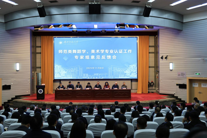郑燕林教授代表专家组反馈了整体考查意见。她首先充分肯定了学校在师范专业建设方面取得的显著成效,并具体概括了四个方面的突出优势:一是全校上下高度重视,系统推进认证工作,展现出强大的“湖师力量”和坚实的制度保障;二是始终坚守师范教育初心,师范专业在国家级一流专业、教学团队和课程建设中占比突出,彰显了鲜明的办学底色;三是积极汇聚“湖师智慧”,构建校地协同的教师教育共同体,通过实验区、共建基地等项目实现UGS深度融合,形成了良好的育人生态;四是创新实施“双力五维”人才培养模式,注重专业能力与综合素养并重、数字赋能与实践创新协同,培养了一大批扎根基层的优秀师资。同时,她也指出了需要进一步改进的方面:通识课程与专业培养的衔接不够紧密,需加强内在联系并促进师资协同;质量保障体系有待进一步健全,需强化各环节标准落实和学院层面的督导;部分职能部门和学院对认证理念理解仍需深化,要确保课程有效支撑培养目标,形成“评价—反馈—改进”的有效闭环。舞蹈学专业组组长刘济良教授和美术学专业组组长舒志定教授也分别结合专业特点,对两个专业的建设情况提出了具体意见和建议。