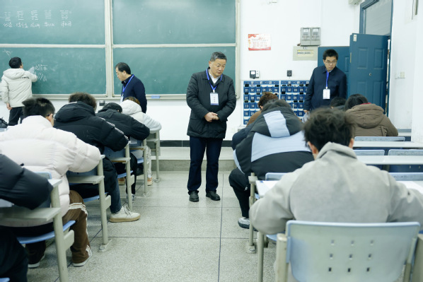本网讯 1月4日上午,校长雷儒金等在校校领导深入期末考试现场,全面巡视考试组织与考风考纪落实情况。校级教学督导、分管教学工作负责人及教务处、教学质量监测与评估中心负责人共同参加巡视。